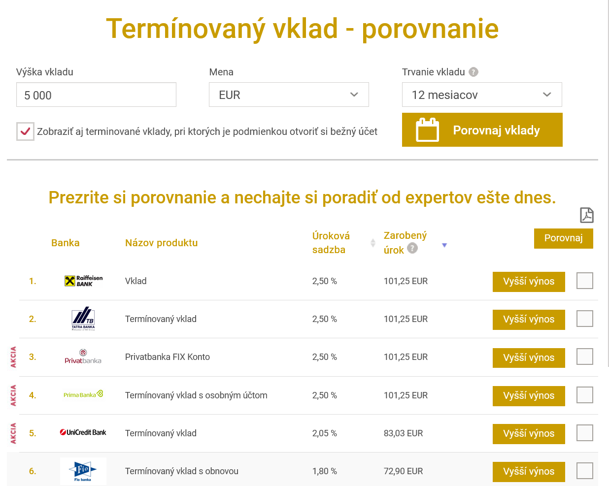 Pred každým rozhodnutím si vždy porovnajte aktuálne ponuky viacerých bánk. Rozdiel medzi najlepšou a najhoršou ponukou na trhu môže byť prekvapivo veľký – a práve tých niekoľko minút strávených porovnávaním sa vám môže vyplatiť v desiatkach, ba aj stovkách eur ročne.