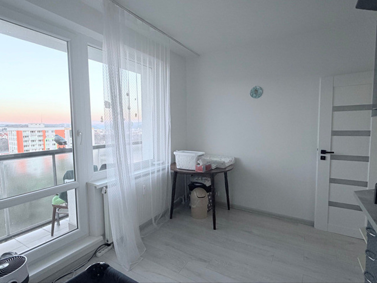 Ponúkam Vám na predaj 2 izbový byt v Banskej Bystrici, v časti Fončorda, na ulici Slnečná č.38. Výmera čisto bytu 60,71 m2 + príslušenstvo murovaná pivnica na prízemí bytového domu 2,10 m2 + 3 lodžie z každej miestnosti 3 x 3 m2. Z bytu je nádherný výhľad, naozaj nádherný, ten Vás očarí určite. Orientácia bytu je na východ taký slabší juhovýchod + jedno okno naviac z kuchyne je aj na sever, skôr tak severovýchod. Poschodie je 8 /8. V priebehu mesiaca 02 a 03 /2026 bola uskutočnená generálna rekonštrukcia strešného plášťa bytového domu. Dispozícia a popis rekonštrukcie bytu: Okná sú plastové a pred 2 rokmi bola robená komplet revízia okien. V kuchyni a spálni sú žalúzie a v obývačke je tieniaci záves. V celom byte sú biele stierky + strop (veľmi dobrý stav). Podlahy sú v kuchyni a izbách jednotné, bledé laminátové, na chodbe je štýlová veľkoplošná dlažba. Na chodbe sú 2 vkusné, biele vstavané skrine na mieru s dostatkom úložného priestoru. Kuchyňa je so samostatnou špajzou a kuchyňa má aj jedálenskú časť. Kuchynská linka je zánovná a má plynovú varnú dosku, digestor, umývačku riadu, elektrickú rúru, nerezové umývadlo s batériou. Jadro je murované, kúpeľňa je s vaňou a samostatné WC je aj s umývadlom. Elektrické rozvody sú čiastočne menené a to v jadre a v kuchynskej linke. Interiérové dvere sú menené za vkusné biele z oceľovou zárubňou. Vchodové bytové dvere sú bezpečnostné. Obývačka je prechodná so spálňou. Z tohto bytu sa dá urobiť zmenou dispozície aj plnohodnotný 3 izbový byt. Byt pôsobí veľmi dobre, je priestranný, svetlý, čistý, veľmi dobre udržiavaný s výhľadom, na ktorý dávam zvlášť dôraz. Tento rok koncom Marca 2026 sa uskutoční výmena stúpacích zvislých rozvodov a v lete je plánovaná výmena nového výťahu - pár dní športových :-) Bytový dom má energetický certifikát primárna energia A0 platný do 01/2034, je panelový postavený v roku 1970 a je zateplený. O upratovanie spoločných priestorov sa stará upratovacia spoločnosť. Správu bytového domu vykonáva SBD BB. V byte je optický internet DIGI a TV-Magio. Parkuje sa na verejných prístupových a priľahlých komunikáciách. Byt sa predáva ideálne zariadený ako je, prípadne dohodou. Majiteľ by si zobral len pár vecí čo by sme si upresnili na obhliadke. Voľný je dohodou. V prípade otázok a dohodnutia obhliadky ma kontaktujte kedykoľvek 24/7. Teším sa na Vaše kontaktovanie. Želám krásne dni :-) V prípade potreby Vám vieme poradiť aj s financovaním, máme viac ako 25 ročné skúsenosti. Spolupracujeme so všetkými bankami a stavebnými sporiteľňami. Vybavíme všetko od A po Z. Do kúpnej ceny je zahrnutá aj odmena realitnej kancelárie. Nehnuteľnosť je vedená pod evidenčným číslom: 3886 Všetky podrobné informácie ako aj obhliadku nehnuteľnosti zabezpečuje Katarína Kubincová. Kontakt: 0907 842 785, 0903 246 649