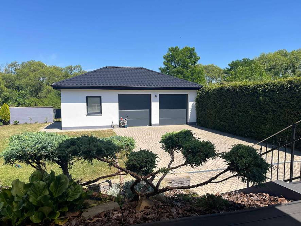Stavba dvoj garáže má výmeru 62 m2 a okrem parkovacích miest sa v nej nachádzajú ďalšie dve miestnosti využiteľné ako dielnička, sklad, V Jednej z miestností sa nachádza studňa neobmedzený zdroj vody na pestovanie, umytie auta, alebo pre bazén. Dom je napojený na verejný vodovod aj kanalizáciu. Na ulici je rozvod plynu, ten nie je privedený do domu. Okrem už spomínaných stavieb sa na pozemku nachádza altánok cca 10 m2. Celý pozemok je oplotený a súčasne bočné strany od susedov sú oddelené drevinami poskytujúcimi súkromie domova.