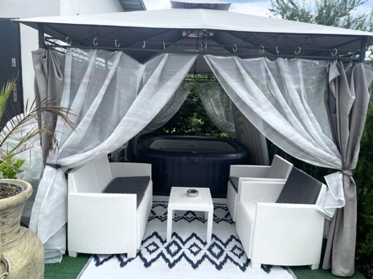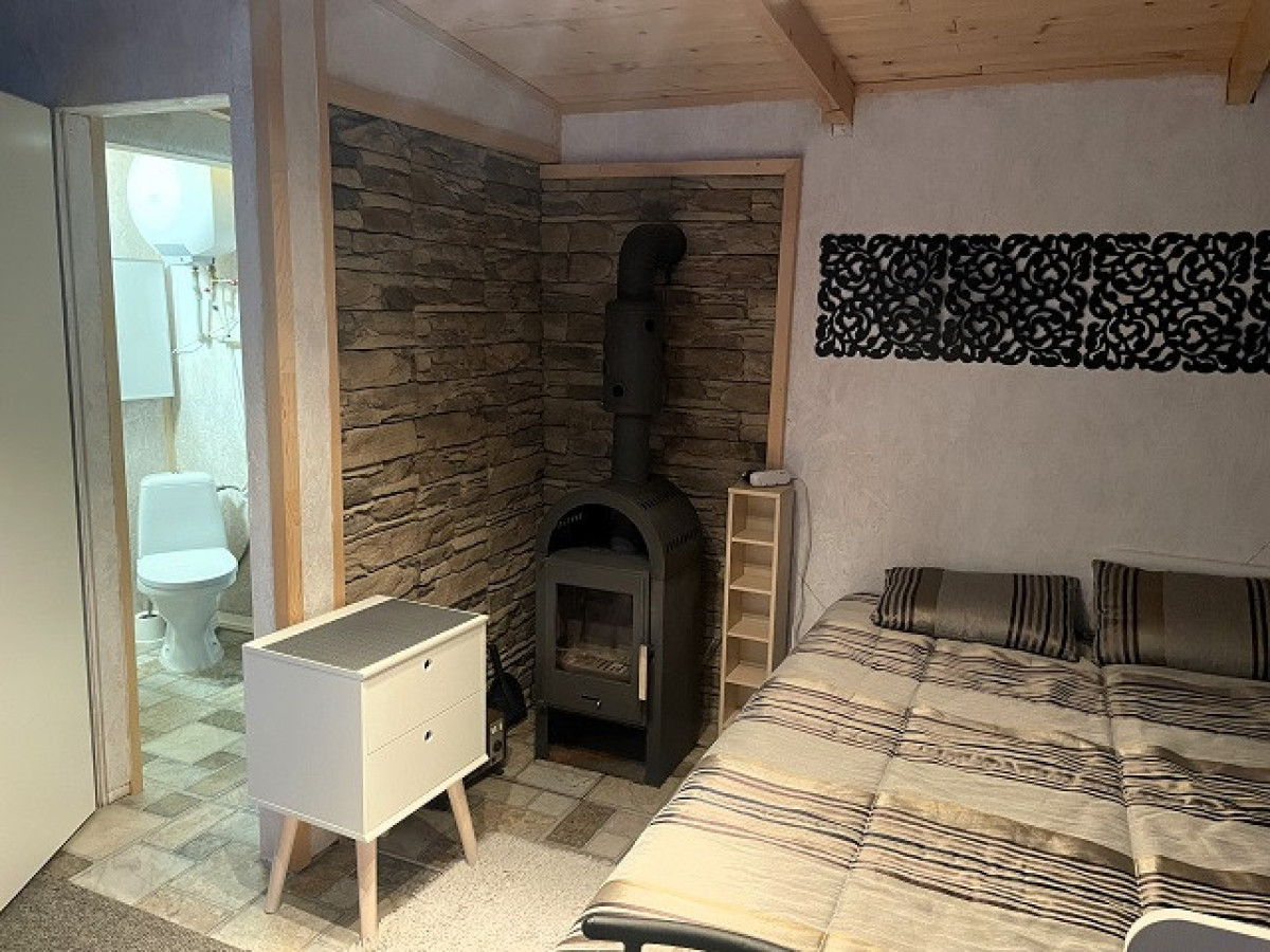 - MALÝ APARTMÁN na prízemí pre 3 osoby : samostatný vchod, vstupná chodba, kuchynský kútik s vybavením a chladničkou, kúpeľňa so sprchou a WC, izba s manželskou posteľou, prísteľkou a vstupom na veľkú prestrešenú terasu