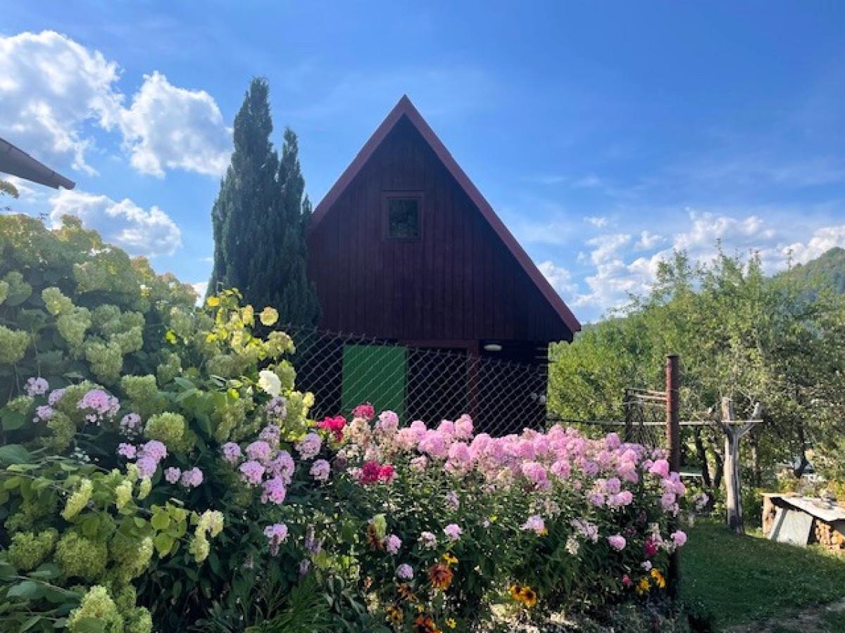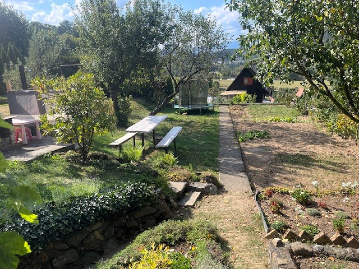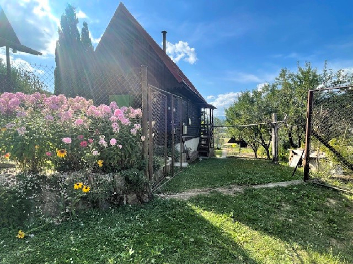 IBA U NÁS! Ponúkame exkluzívne na predaj rozprávkovú záhradnú chatku s terasou s čarokrásnym výhľadom v záhradkárskej osade Pod Bukovinou vo Valaskej. Zastavaná plocha chatky je 18 m2, obytná cca 36 m2. Pozostáva z prvého murovaného podlažia - sklad, pivnica, WC; z druhého nadzemného podlažia - kuchyňa s obývačkou vykurovaná pieckou a z podkrovia - spálňa. IS: elektrina, vodovod napojený na úžitkovú vodu z potoka, septik. Na rovinatom pozemku s celkovou rozlohou 288 m2 sa nachádza vonkajšia sprcha, posedenie s ohniskom, ovocné stromy a množstvo zelene a kvetov. K chatke vedie spevnená prístupová cesta vysypaná skalami. Súčasťou predaja je podiel na prístupovej ceste. Parkovať je možné na pozemku pri chatke alebo na spoločnom parkovisku. V okolí je prekrásna príroda s množstvom možností na šport a oddych.