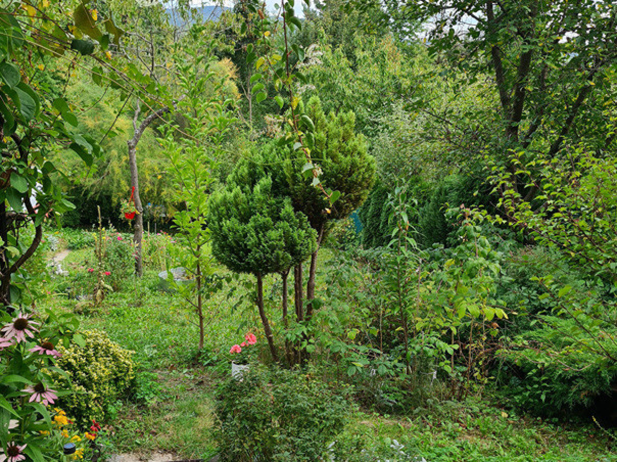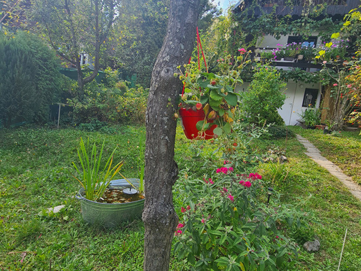 Záhrada: na pozemku sa nachádzajú ovocné stromy, hrozno, ovocné kríky, ozdobné rastliny, živý plot, trávnatá plocha, bylinky, kvetiny, spevnený chodníček, priestor na bazén+trampolínu, lavička pod stromom, altánok s príjemným posedením.