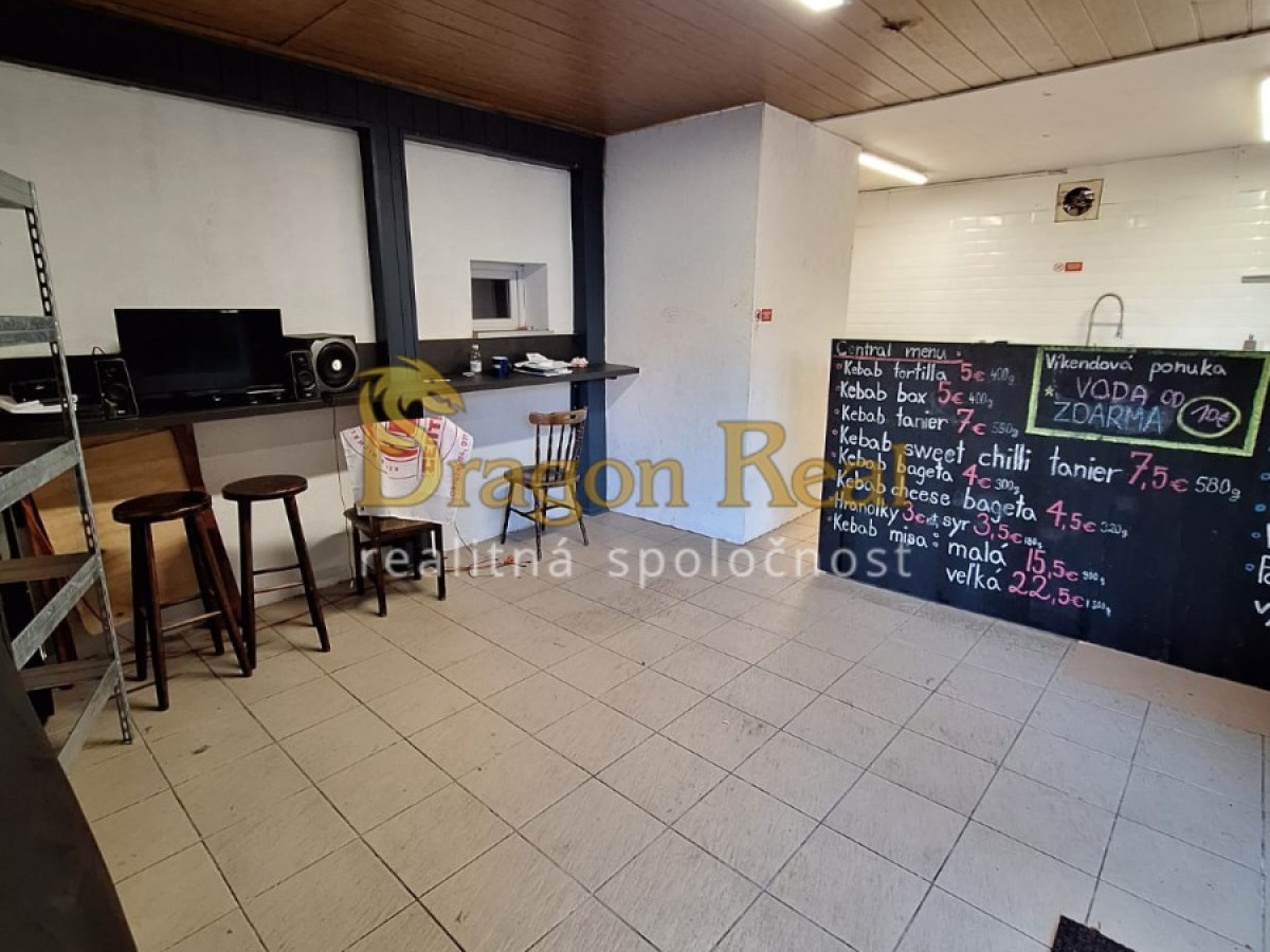 Priestor je ako stvorený pre kebab prevádzku, bagetériu, menšie bistro či kaviareň, no môže poslúžiť aj ako miesto pre rodinné oslavy či firemné posedenia /cca 30 osôb/. Vďaka už vybudovanému výdajnému okienku máte možnosť ponúkať jedlo aj formou take-away – čo je veľkým bonusom pre dnešný spôsob stravovania.