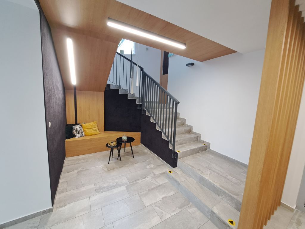 Kancelária sa nachádza na 1. posch. budovy, k dispozícii je vstupná časť so sedením, kuchynka, sprcha, toalety, klimatizácia v každej kancelárii, výťah. Parkovanie je možné zabezpečiť v areáli budovy. Admin. budova sa nachádza blízko centra,v lokalite vedľa biznis centier na Prievozskej a autobusovej stanice Nivy s dobrou dostupnosťou a napojením na obchvat.