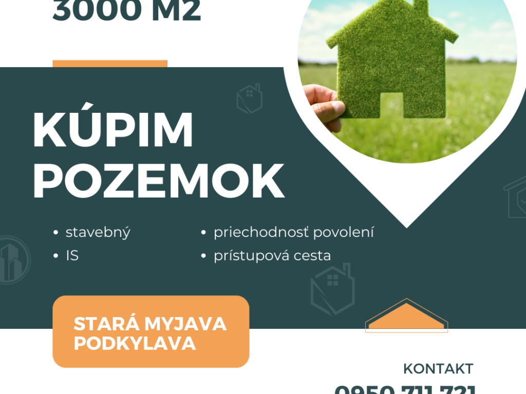 Hľadáme stavebný pozemok 5000 m2 Myjava, Stará Myjava, Podkylava...