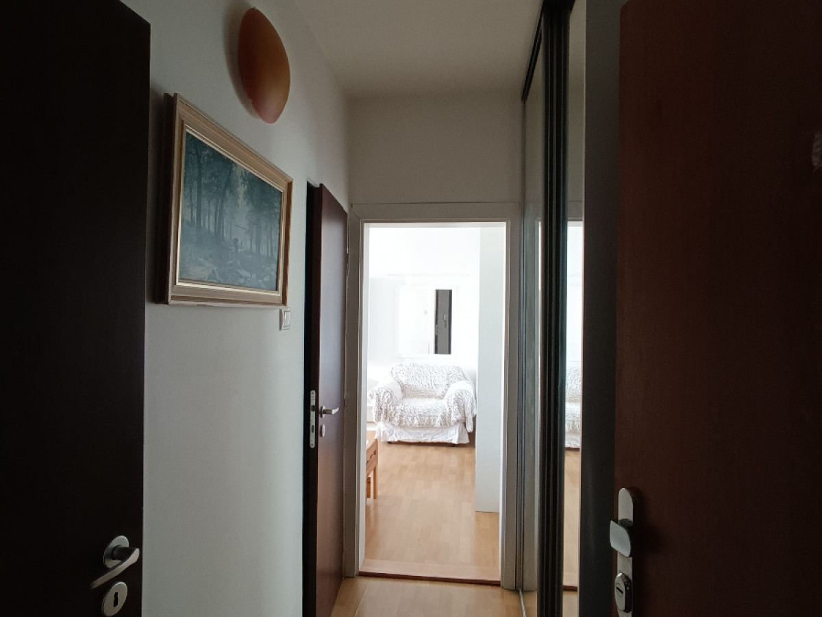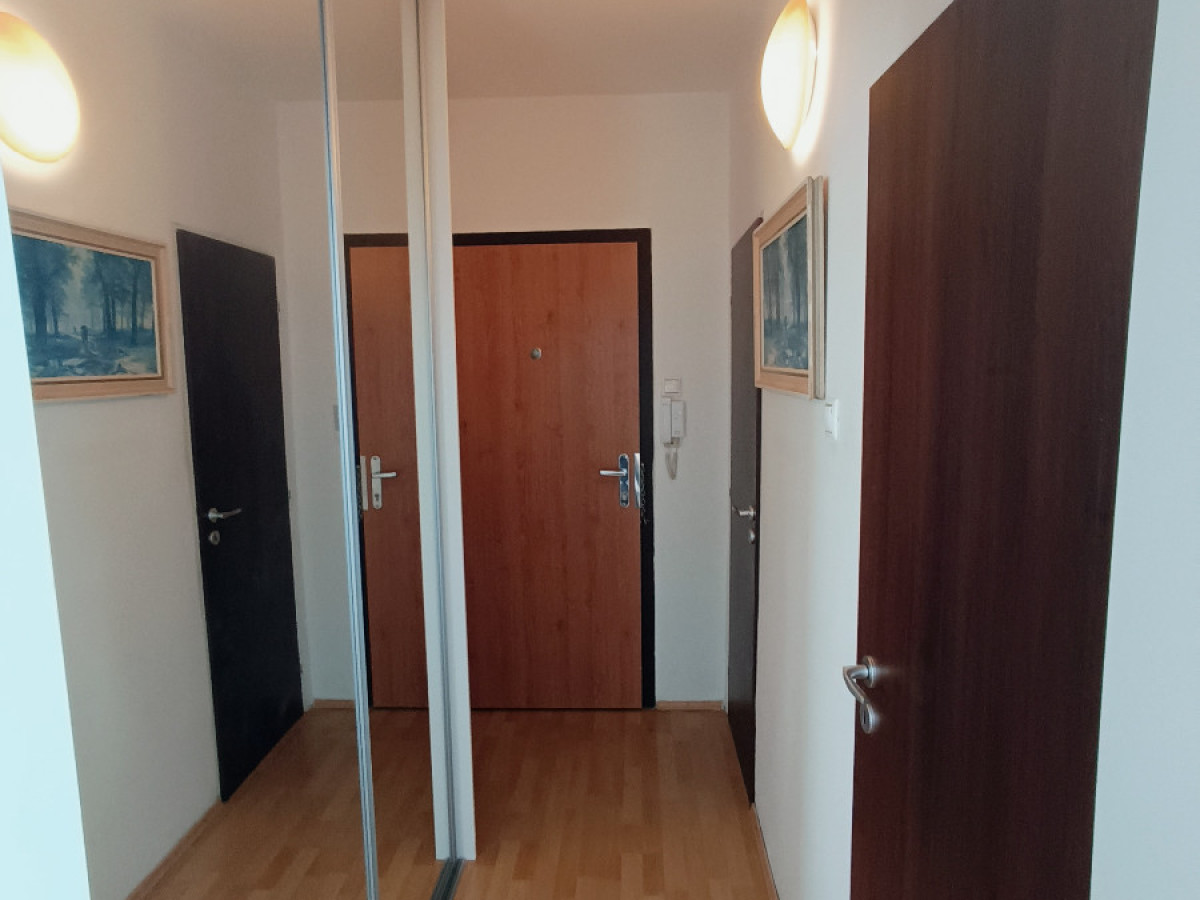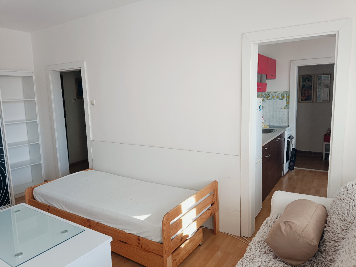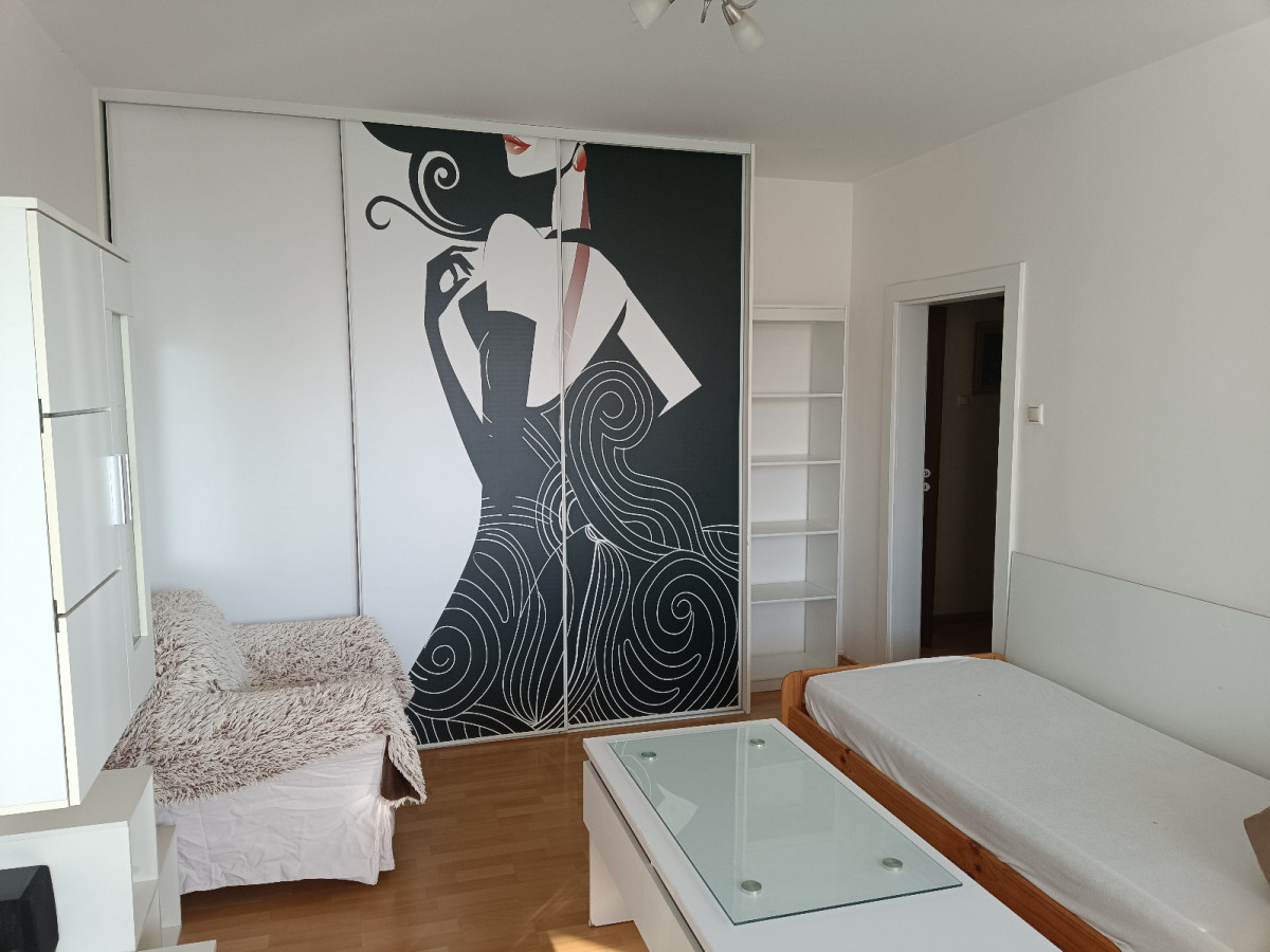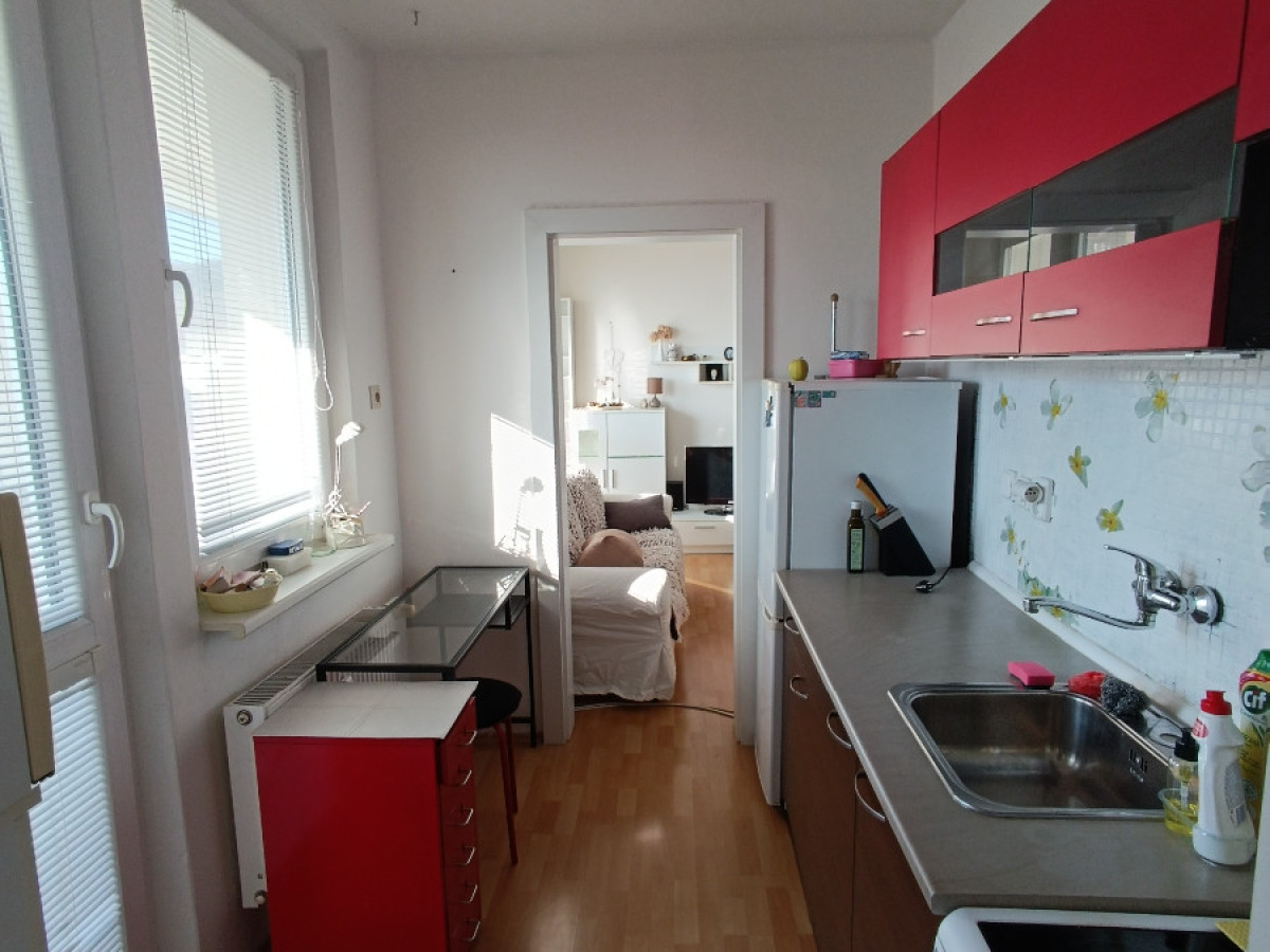Ponúkam na prenájom slnečný 1-izbový byt v panelovej budove s výťahom na 5. poschodí z 6. Celková plocha bytu je 34 m2 + 6m2 loggia. Byt je zariadený s možnosťou nasťahovať sa ihneď. Nie sme RK.