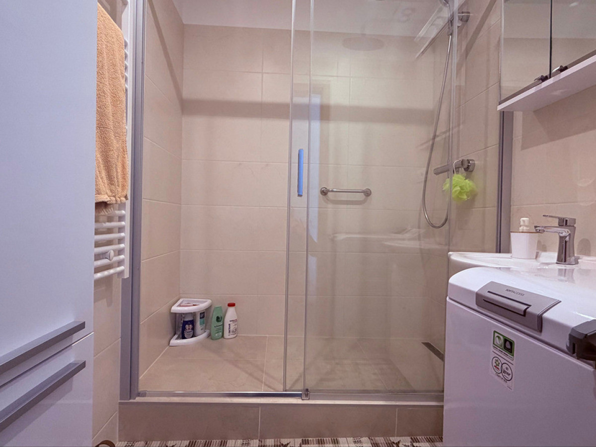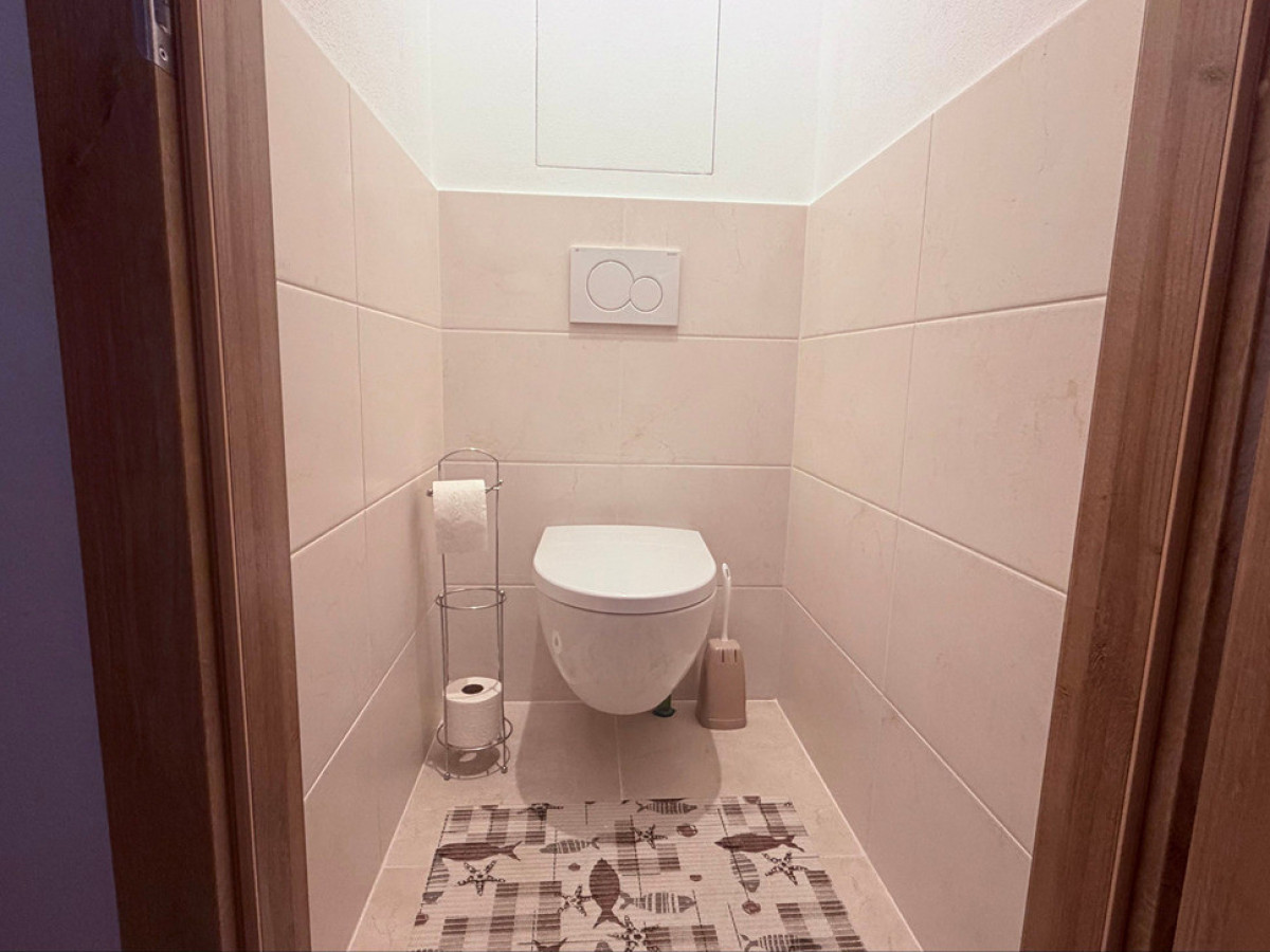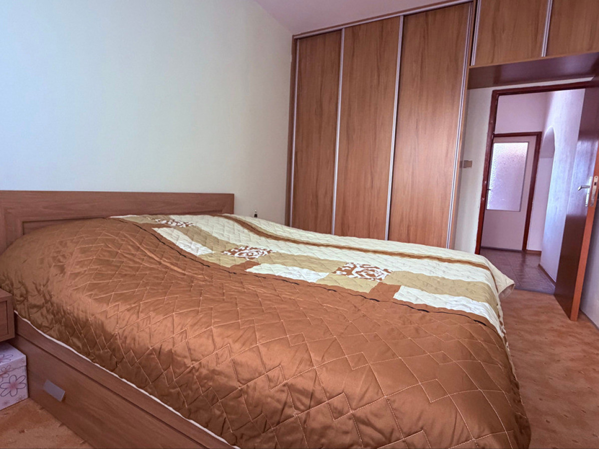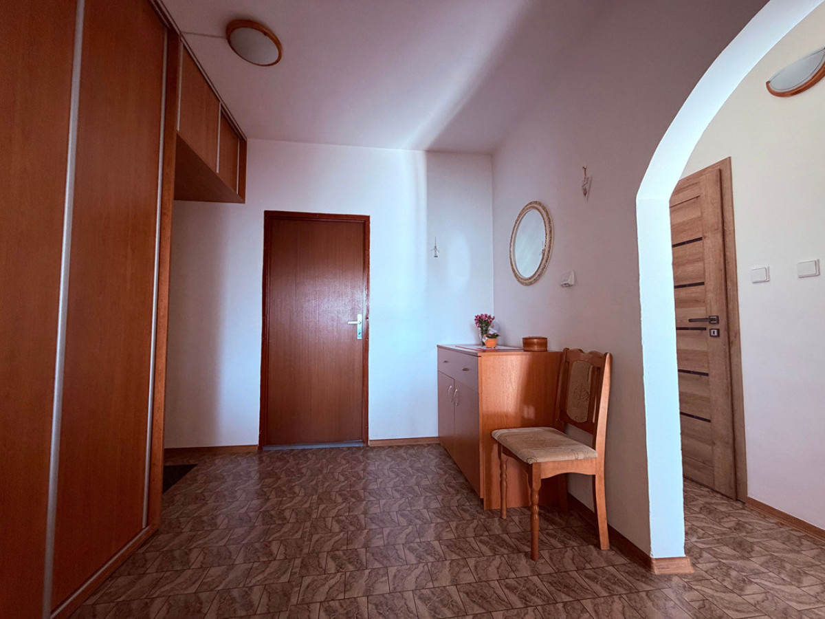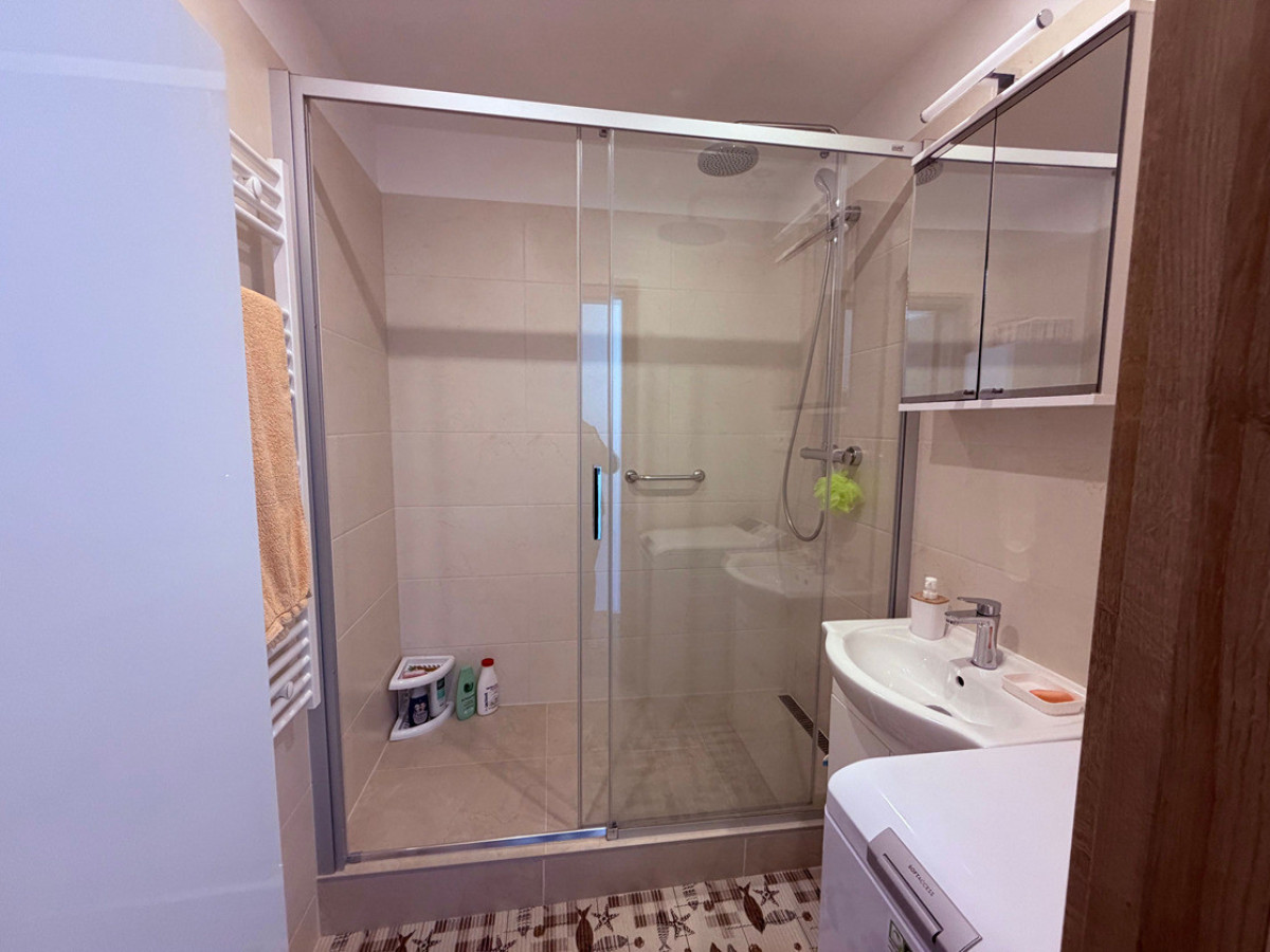 V byte je dostatok úložného priestoru: 3x vstavené skrine v chodbe, spálni a detskej, ktoré boli robené postupne nedávno cca 3 roky dozadu. Pred pár mesiacmi sa komplet rekonštruovala kúpeľňa s WC, osobitne je WC - geberit, kúpeľňa je s murovaným priestranným kútom so zasklením. Menili sa aj nové dvere na WC a kúpeľni, ktoré sú vkusné, ostatné dvere sú pôvodné, ale zato vo veľmi dobrom stave. Kuchynská linka je zánovná (drevo masív), varenie je na plyne. Kúrenie je ústredné s meračmi tepla na radiátoroch. Okná v celom byte sú plastové biele so žalúziami a sieťkami proti hmyzu. V byte sú stierky v dobrom stave. Čo sa týka podláh tak v izbách sú koberce pod nimi linoleum, chodba a kuchyňa linoleum.