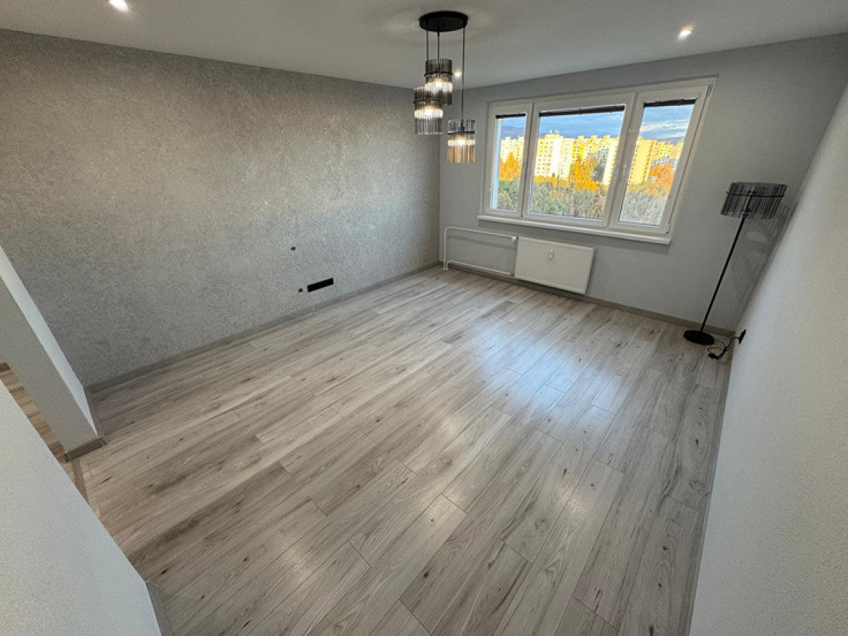 Plastové okná so žalúziami a sieťkami proti hmyzu v celom byte. Kompletná nová elektroinštalácia s revíznou správou. Zásuvkový a svetelný okruh, priamy prívod pre varnú dosku, priamy vývod pre optiku na TV - všetko podľa STN. Bodové svetlá sú naviac v kuchyni, obývačke, kúpeľni na chodbe. Nové rozvody vody a odpadu. Podlahy: pôvodné podlahy boli odstránené, vyrovnané nivelizáciou a je novo položená jednotná laminátová podlaha. V kúpeľni je podlahové kúrenie s reguláciou termostatu. Steny: všetky pôvodné nátery boli odstránené a spravili sa 2 zrovnávacie vrstvy, ktoré sú vysieťkované proti prasklinám. Je novo natiahnutá silikónová umývateľná omietka. Stropy sú znížené SDK, použitá izolácia proti prehrievaniu od strechy 100mm, je použitý 3x oteru vzdorný náter. Kúpeľňa: použité nadštandardné materiály, veľkoformátová dlažba+obklad, WC Geberit a sprchový kút. Nové bytové vchodové bezpečnostné dvere triedy A. Interiérové dvere sú s obložením zárubní. Kuchynská linka na mieru do tvaru L so zabudovanými spotrebičmi: široká umývačka riadu, chladnička s mrazničkou, elektrická rúra, mikrovlnka, digestor, granitový drez, indukčná varná doska. Vo vstupnej chodbe je priestranná šatníková skriňa so zrkadlom.