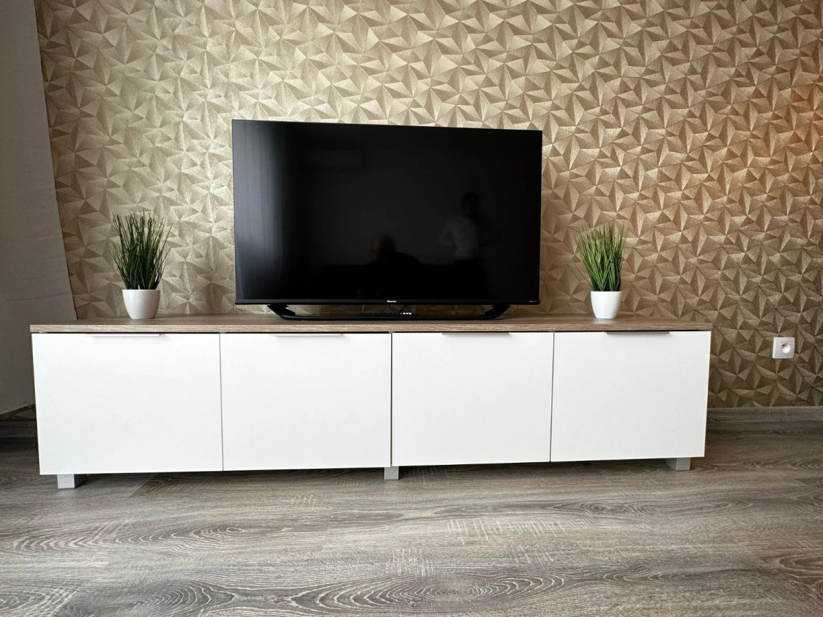 Byt je zariadený kvalitným a moderným nábytkom na mieru s množstvom úložného priestoru.
