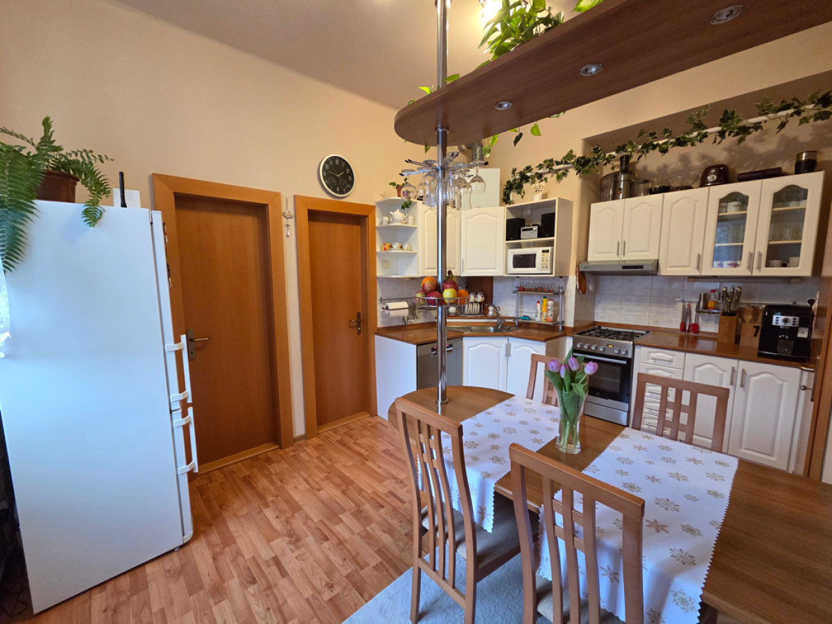 Ponúkame na predaj byt v centre mesta Banská Bystrica v tichej lokalite s najlepšou dostupnosťou. Robotnícka ulica je oceňovaná svojim pokojom dosahom na peši všetkých služieb, obchodov, polikliniky aj dopravy. Štvorizbový byt po kompletnej postupnej rekonštrukcii o výmere podlahovej plochy 100,27 m2 je pripravený v krátkom čase poskytnúť vysoko komfortné bývanie rodine s deťmi, alebo v kombinácii bývanie kancelária prispieva aj optický internet ku účelnému využitiu veľkoryso riešených izieb. Každá izba má samostatný vchod z chodby a súčasne sú izby spojené dverami, čo umožňuje flexibilné využitie aj súkromie zároveň. K bytu prináležia dve pivnice o výmere 8,67 m2 a 7,36 m2 ako aj priestor v podkroví o výmere 19,69 m2. K spokojnosti a pohodliu poslúži aj rezidenčné parkovanie, 2 parkovacie miesta, k tomu parkovanie priamo pod oknami bytu vo vnútrobloku. Byt sa nachádza na 2. nadzemnom podlaží, bez výťahu. Orientácia bytu. Smerom na severo-východ sú orientované pracovňa, kuchyňa, komora, WC a lodžia. Smerom na juho-západ sú orientované spálňa, obývacia izba aj detská izba. Byt má vlastné plynové kúrenie a prípravu TÚV. Tehlový bytový dom, s novou fasádou novou sedlovou strechou vymenené oboje v roku 2025. Najväčšími prednosťami je komplexnosť ponuky, bývanie, parkovanie, poloha, orientácia bytu a lokalita v ktorej sa nachádza.