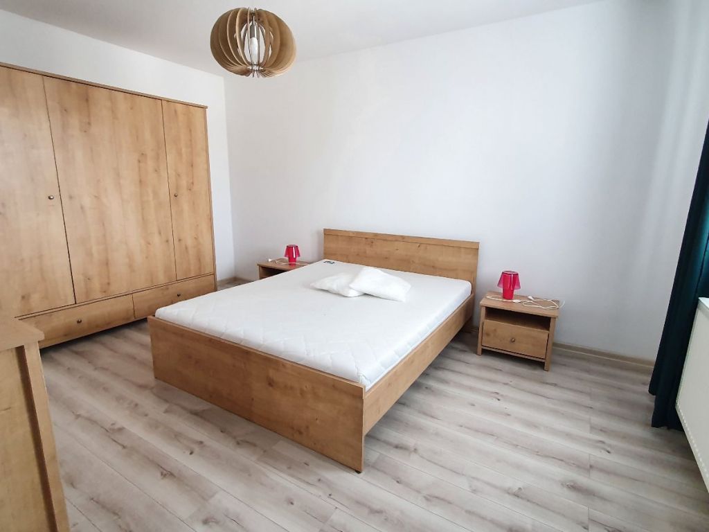 - dvojposteľ so stolíkmi, drevené skrine, svietidlá