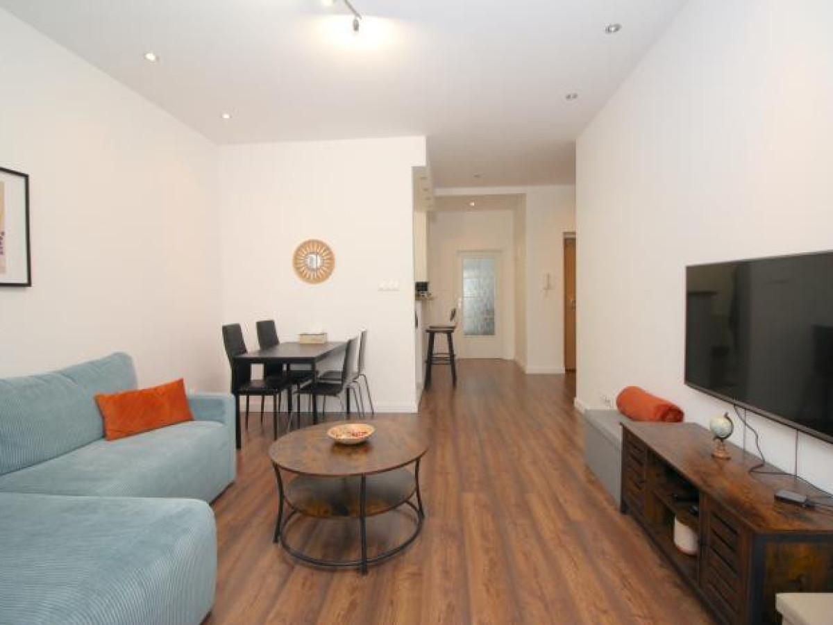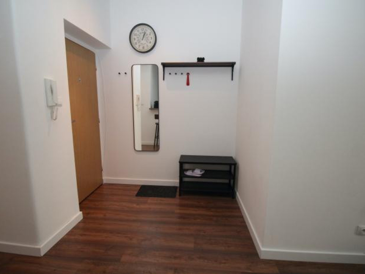 Byt má praktické dispozičné riešenie, priestrannú obývačku s jedálenským sedením prepojenou s kuchyňou a výhľadom na pešiu zónu na slnečnú, Juho-západnú stranu a samostatnú spálňu, orientovanú do tichého átria, orientovanú na Severo - Východ (ranné slniečko) s príjemným posedením na balkóne. V kúpeľni je sprchový kút, wc je samostatné, k bytu patrí pivnica v suteréne tehlového bytového domu s malým počtom bytov. Byt prešiel čiastočnou rekonštrukciou, pred 5-timi rokmi (kuchyňa, kúpeľňa, parkety, okná...)