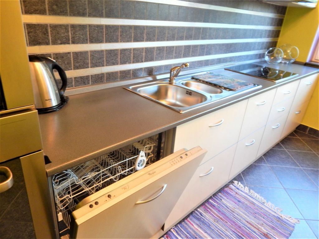 - plne vybavená kuchyňa (vstavané spotrebiče: chladnička, rúra, mikrovlnná rúra, umývačka riadu, sklokeramická varná doska, kuchynský robot),