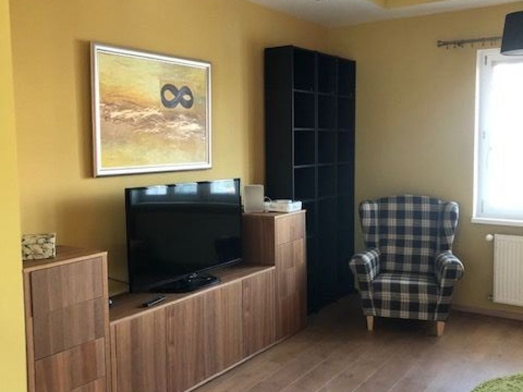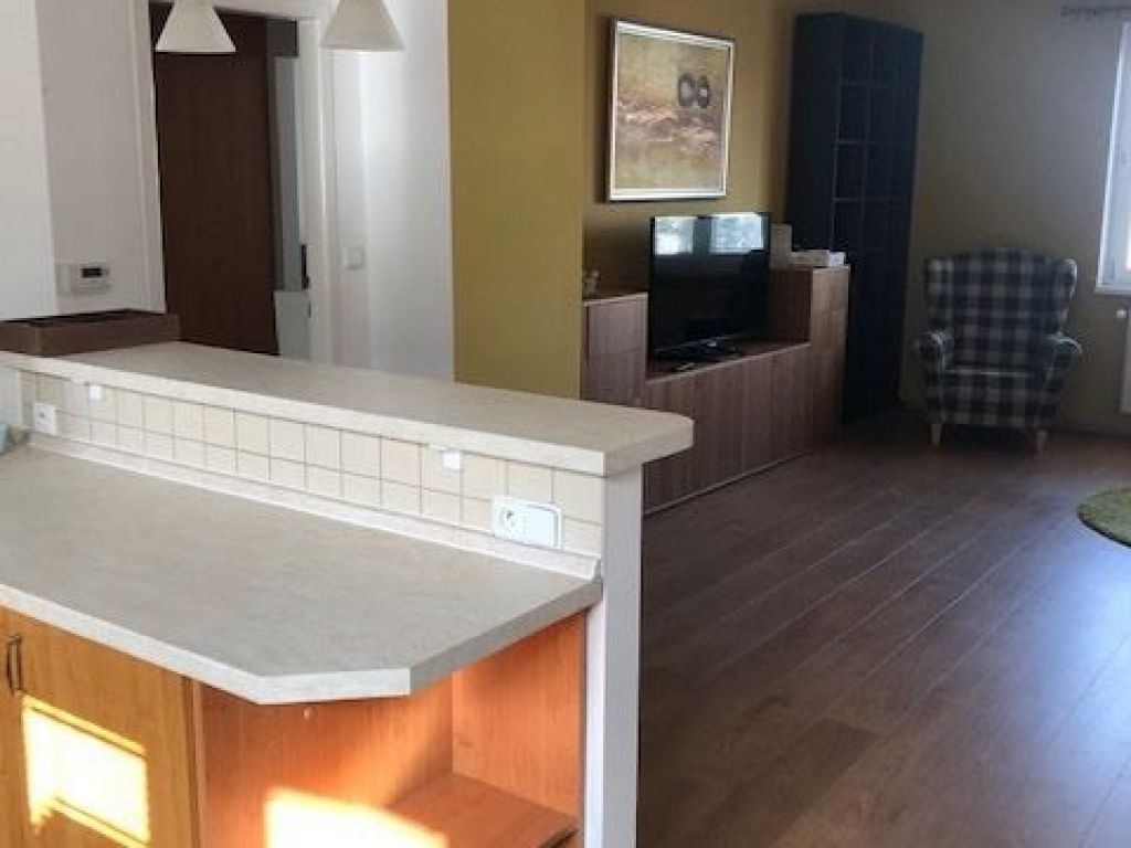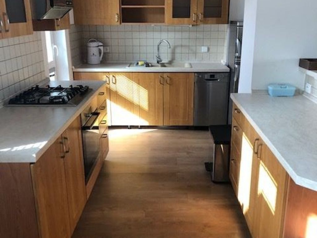 BYT JE PO KOMPLETNEJ REKONŠTRUKCII: bezpečnostné vchodové dvere, plastové okná a žalúzie, pôvodné drevené parkety v spálni, plávajúce podlahy v obývačke a v kuchyni, dlažba v predsieni, v kúpeľni sa nachádza vaňa, WC je samostatné – závesné, s umývadielkom, kuchynská linka so spotrebičmi (plynová varná doska, digestor, rúra, umývačka riadu, chladnička).
