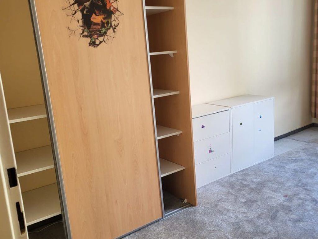 Spálňa: plastové okno, parkety, vstavaná skriňa.