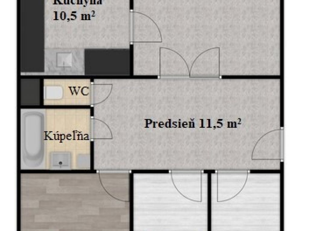 – Byt má výmeru 77,23 m2 + LOGGIA. K bytu prislúcha aj pivnica.