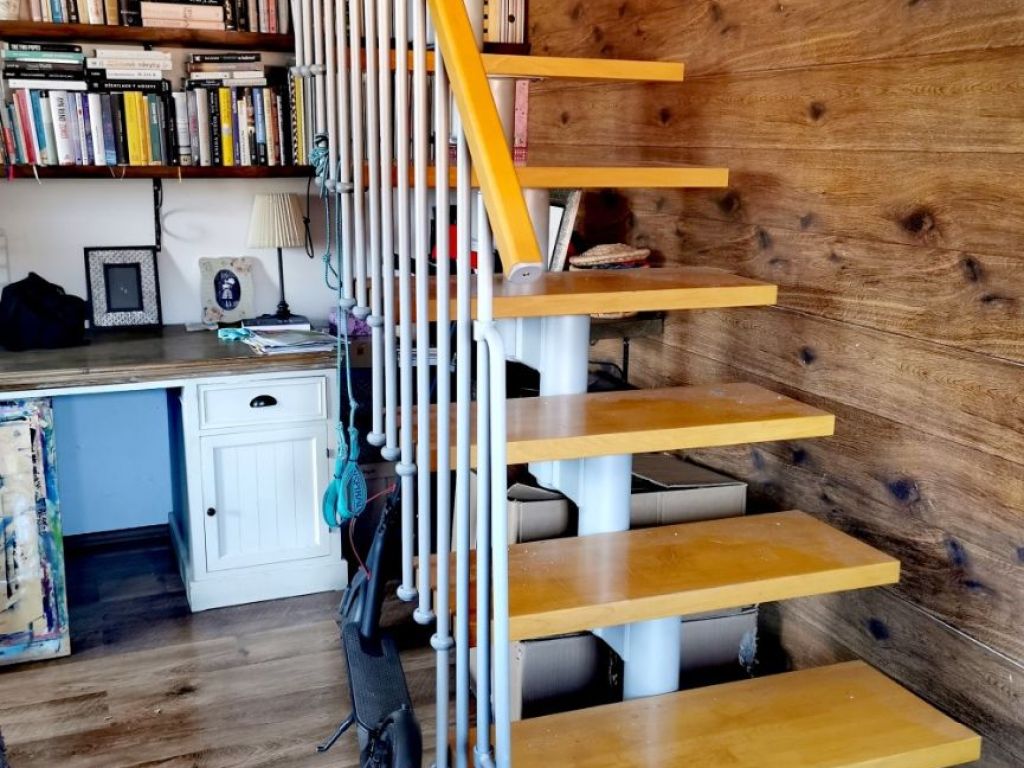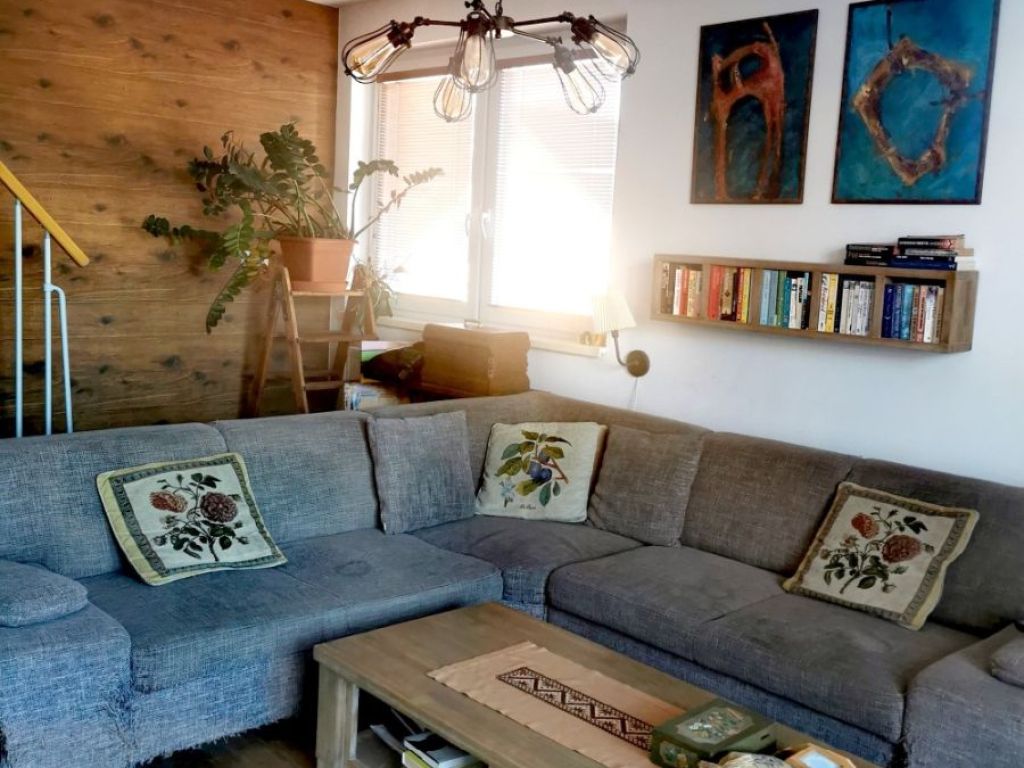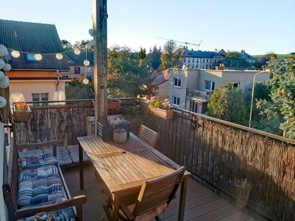 Predáme 4-izbový mezonetový byt na 3.nadzemnom podlaží v nadstavbe tehlového bytového domu v širšom centre mesta na ul. Komenského, celková rozloha bytu 112 m2 s priestrannou otvorenou terasou o výmere 15 m2. Na prízemí sa nachádza denná časť – obývačka, kuchyňa a veľká presvetlená kúpeľňa s dvomi oknami, vaňou, sprchovacím kútom a WC. Z obývačky vedú balkónové dvere na terasu orientovanú na sever a schody do podkrovia, kde sa nachádzajú dve detské izby s vikierovými oknami orientovanými na východ, WC a spálňa s oknom na sever a kumbálom. V obývačke sa nachádza kozub s komínom. Byt je vykurovaný vlastným kotlom.