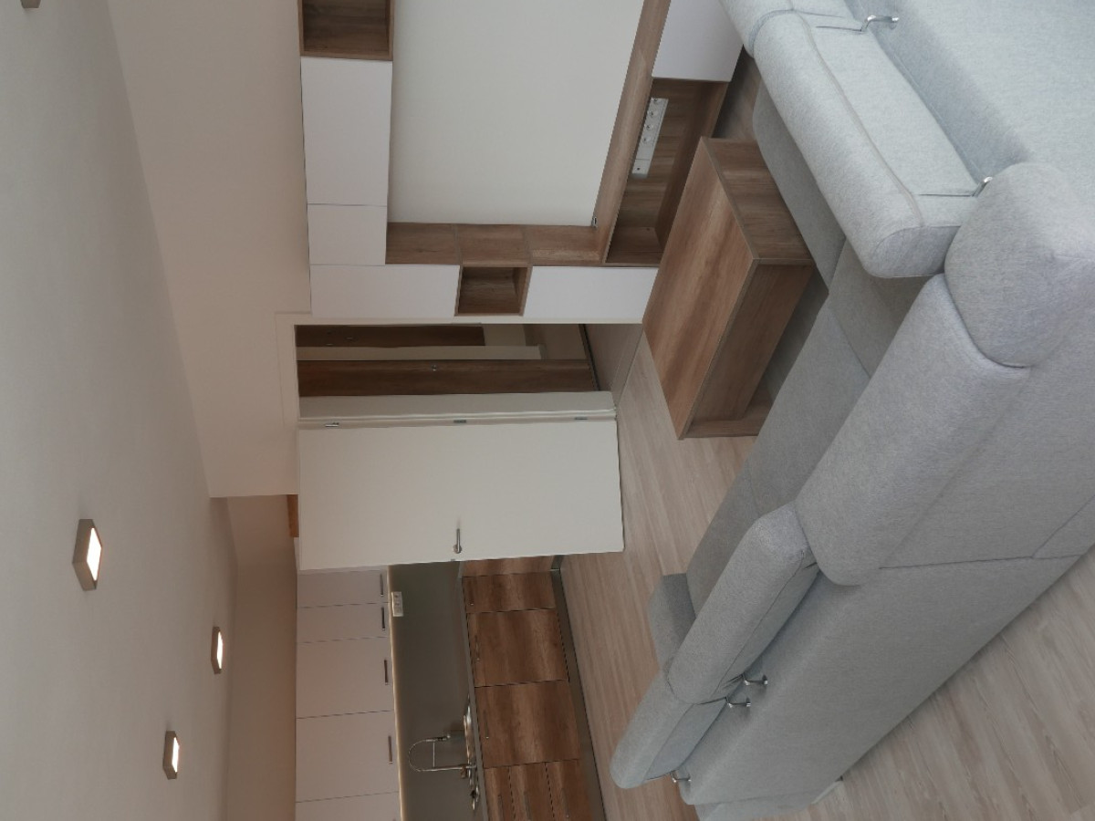 +cbyt pozostáva zo vstupnej chodby, obývačky moderne prepojenej s kuchyňou, spálne, kúpeľne s vaňou a záchoda. Kuchyňa je nadštandardne plnohodnotne +ybavená v modernom luxusnom prevedení. Jedálenskú časť bytu predstavuje stôl s prestieraním pre štyroch. V obývačke je priestranný moderný gauč v tvare L. V priestrannej kúpeľni je vaňa, práčka a okno, ktoré poskytuje prirodzené denné svetlo. Záchod sa nachádza v oddelenej miestnosti
