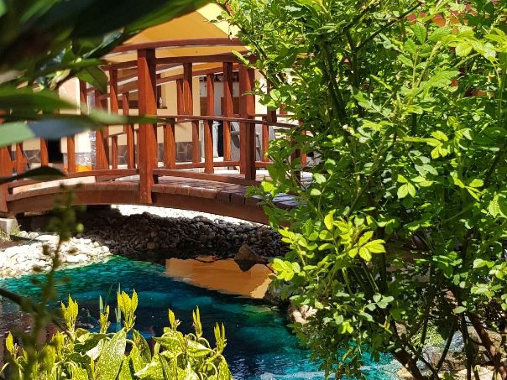 Predám krásny moderný rodinný dom s bazénom, jazierkom, fitnescentrom, záhradou a veľkým altánkom. Dom má úžitkovú plochu 400m² + 1600m² pozemok. Je moderne riešený a nízkoenergetický. Kúrenie a výhrev je na plyn. Celkové náklady na bývanie sú nízke ( mesačne plyn 80€ a elektrika 50€ ). Bazén má 28m² má automatickú filtráciu s časovačom + možnosť prehodiť na slanú vodu. Jazierko má filtráciu s ÚV a drevený mostík. Fitness miestnosť je zariadená profesionálnymi a značkovými strojmi a činkami. Vyhovuje aj najnáročnejším športovcom, nakoľko je vybavená na precvičenie každého svalu, ako aj na bojové športy. Záhrada je zapestovaná a poskytuje všetky druhy ovocia: Marhuľa rôzne druhy - 9 stromov, broskyňa - 6 stromov, jabloň - 6 stromov, čerešňa - 12 stromov, Arónia - 3 stromy, Hloh, Rakytník - 2 stromy, orech - 6 stromov, moruša - 6 stromov, mandle - 5 stromov, dula - 1 strom, ringlota - 1 strom, hurmikaki - 2 stromy, datľa - 1 strom, slivka - 15 stromov, brazílska čučoriedka - 2 stromy, lieskové orechy - 5 stromov, lipa, vŕba, hrušky, maliny, jahody,... Na druhom dvore sa nachádza 200 ročná lipa, ktorá robí v lete výbornú klímu a tieň veľkému altánku. Pri altánku ja na zákazku postavená obrovská klietka vyrobená z hliníka ( bez údržby ) výška 7.5m a priemer 9m v tvare diamantu. Možnosť chovať papagáje, dravce aj šelmy. Celý dom je moderne riešený, úžitková i okrasná zeleň je zakomponovaná po celom pozemku, dáva pocit kľudu a raja. Dom má 2 parkovacie miesta na dvore a 3 pred domom. Brána je elektrická. Dom sa predáva z dôvodu odchodu zo Slovenska. Cena sa dá dohodnúť pri rýchlom jednaní (cash ) výborná cena. Dom sa nachádza 6km od Hlohovca v tichej dedinke obklopenej prírodou. Kontakt: 0914 175 227