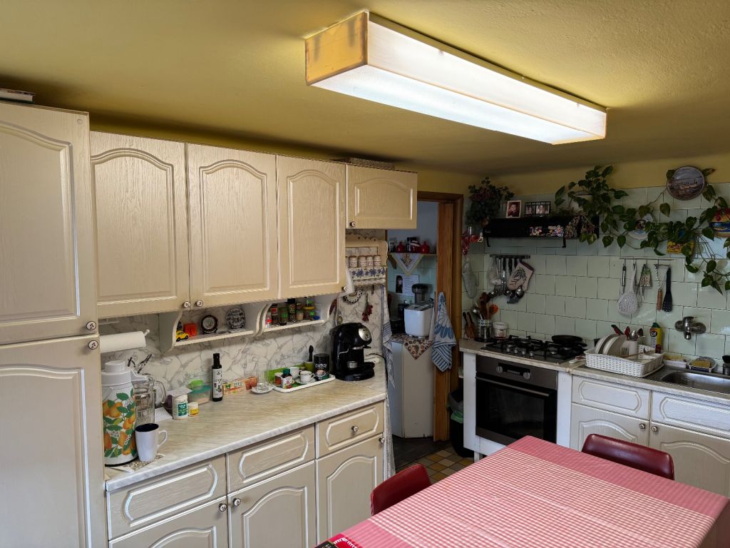 Na poschodí sú 4 izby + hala, kuchyňa, kúpeľňa, WC a na podlaží 1 izba, kuchyňa, veľká garáž, práčovňa/sušiareň, veľká špajza a 1 komora.