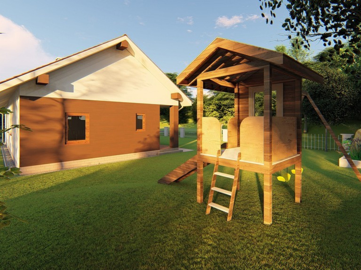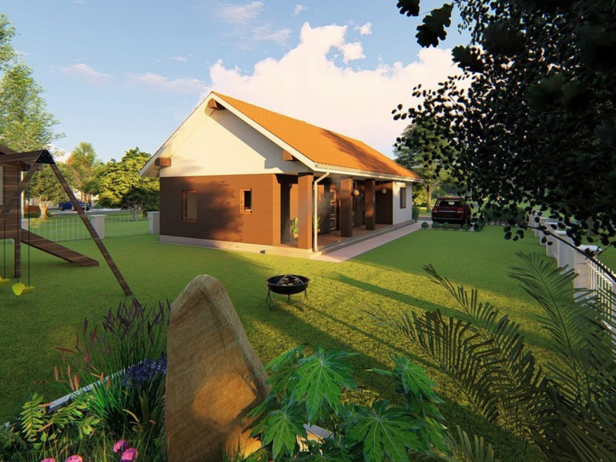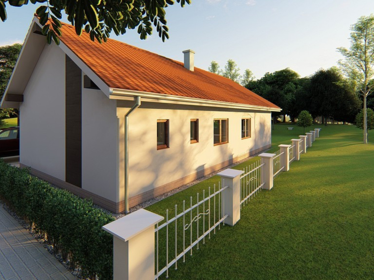Ponúkame Vám na predaj projekt bungalovu rodinného domu. Dispozične je riešený ako 4+KK, teda obývacia izba je prepojená s kuchynským kútom a tvorí priestrannú otvorenú dennú časť domu. Ďalšie tri izby sú samostatné. Spacie izby sú dennou časťou rozdelené na dve menšie nočné časti. Úžitková plocha je 84 m2. Viac projektov nájdete na real-corp.sk.