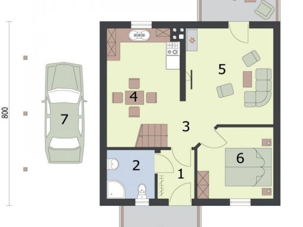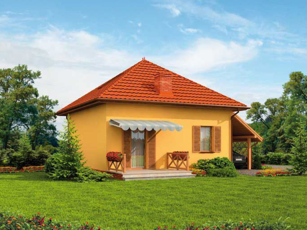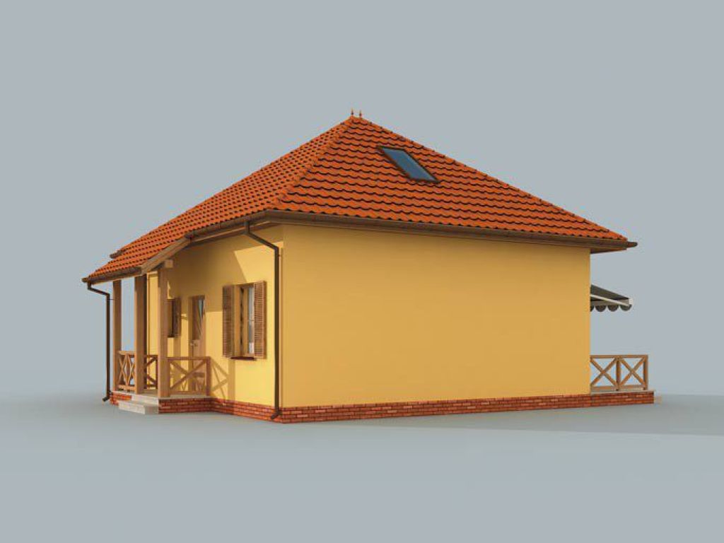 Ponúkame Vám na predaj projekt dvojpodlažného drevodomu určený pre stredne veľkú rodinu. Disponuje dvomi samostatnými izbami a obývacou izbou čiastočne prepojenou s kuchynsko-jedálenským kútom. Z obývacej izby je výstup na terasu. Jedna zo spacích izieb je na prízemí, druhá v podkroví. Z boku domu je naprojektovaný prístrešok pre auto. Celá vnutorná dispozícia je bez nosných stien, rozloženie priečok je teda menné. Viac projektov nájdete na real-corp.sk.