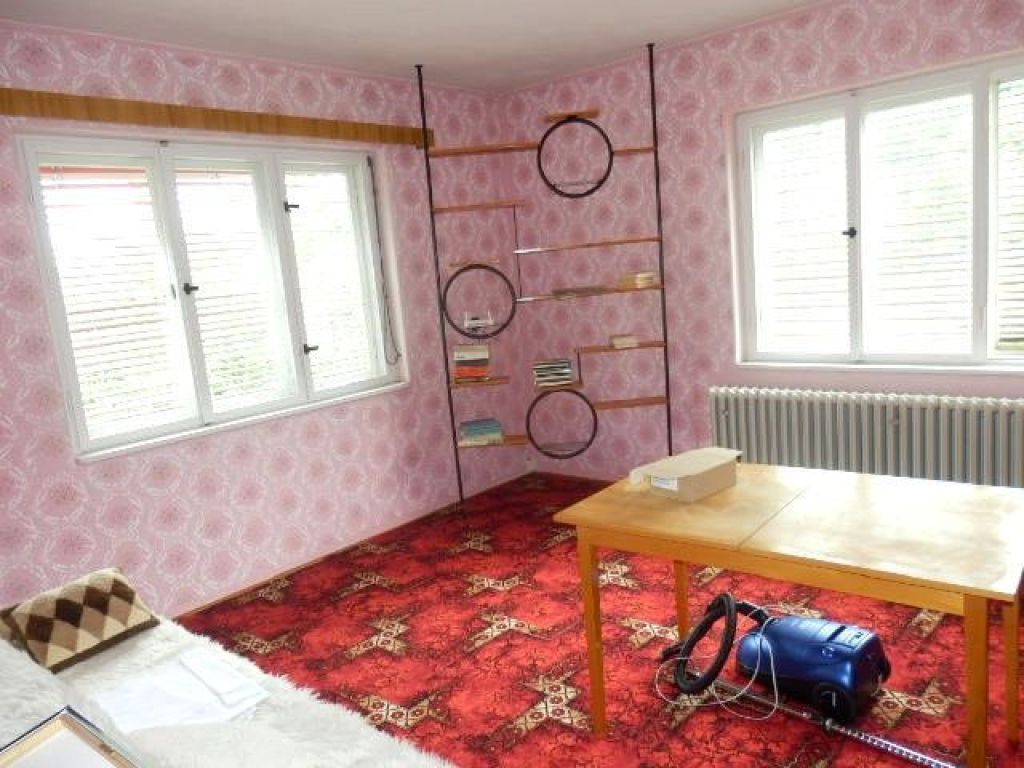 1. poschodie - 4 veľké izby (dve s balkónom), chodba, vstupná veranda, špajza