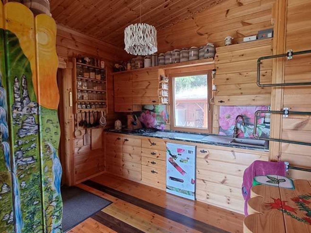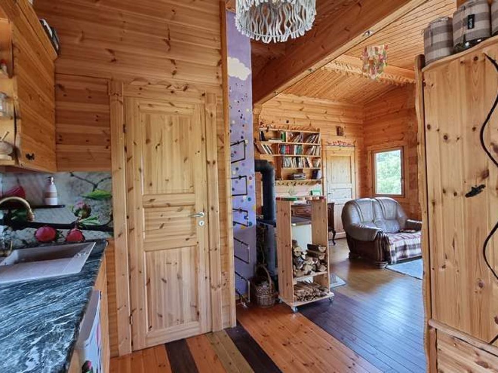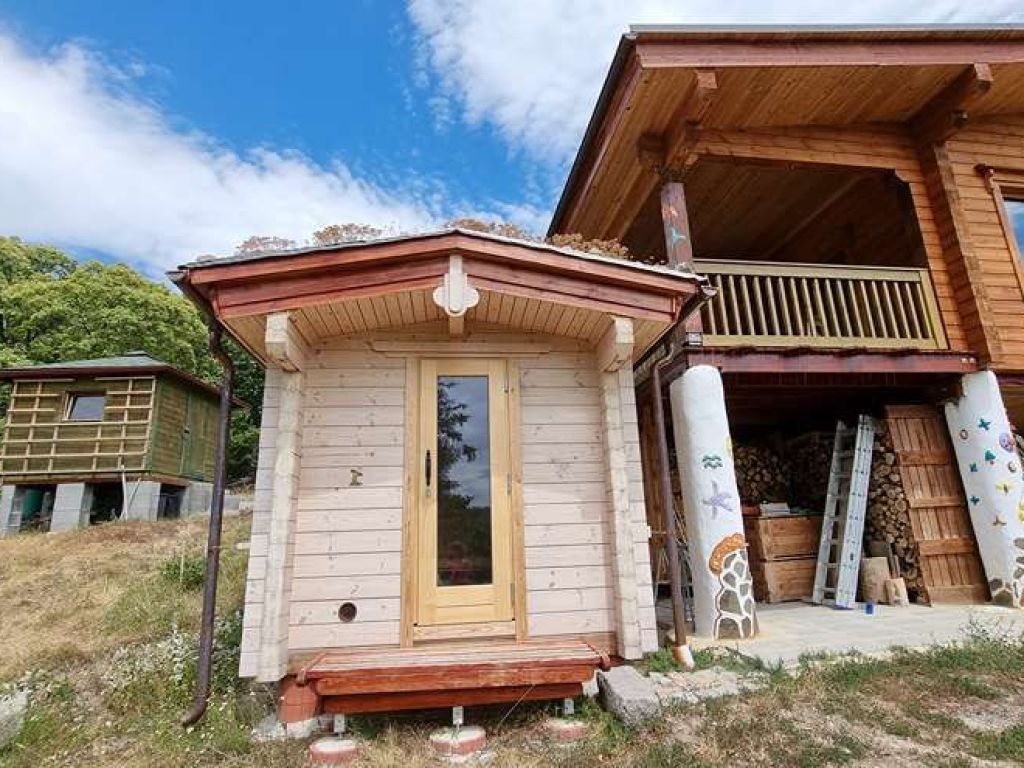 Ponúkame na predaj jedinečný celoročne obývateľný fínsky drevený zrub so saunou, pivnicou, skleníkom, jazierkami, domčekom na náradie, pecou na chlieb, záhradou na pestovanie plodín a ovocnými stromami. Nehnuteľnosť sa nachádza na slnečnom terasovitom pozemku o výmere 17 444 m², iba 6 km od mesta Krupina. Prístup je cez oblasť Červená hora, posledné 2 km vedú lesnou cestou – zaručené ticho, súkromie a nočná obloha posiata hviezdami.
