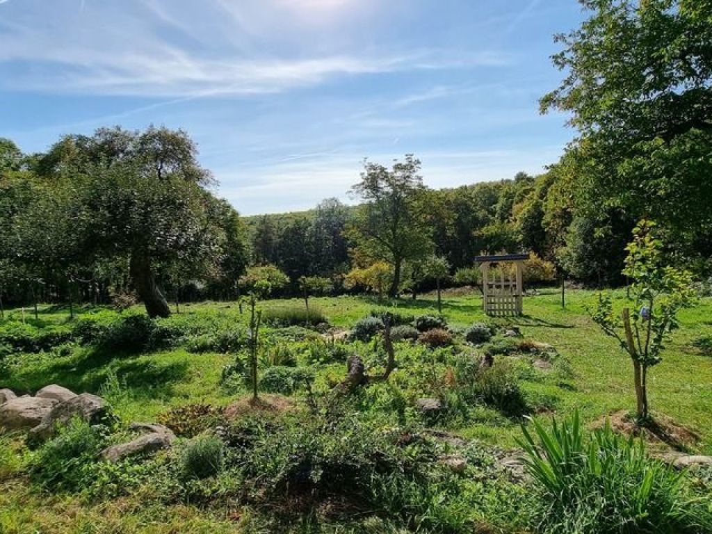 • Záhrada: úžitková záhrada s ovocnými stromami, skleníkom a nádržami na dažďovú vodu v zemi.