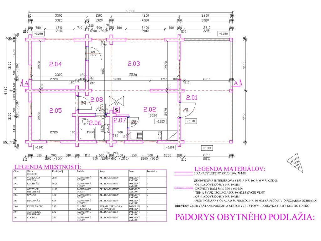 • Dispozícia prízemia: prestrešená terasa, kuchyňa spojená s obývačkou, technická miestnosť, kúpeľňa so sprchou a suchým WC, dve izby.