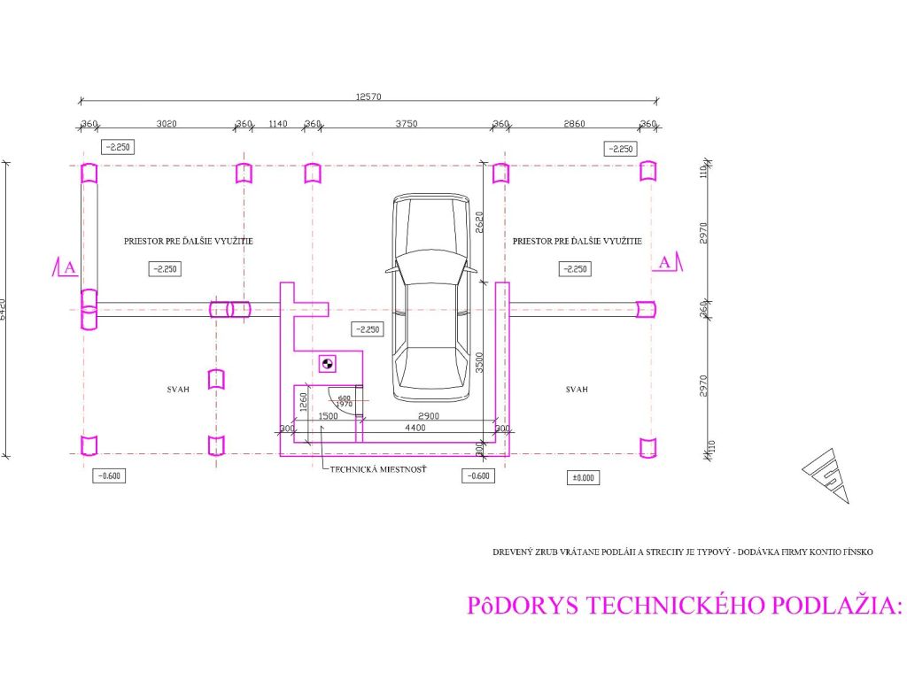 • Suterén: státie pre auto, sklad dreva, voľný priestor na ďalšie využitie.