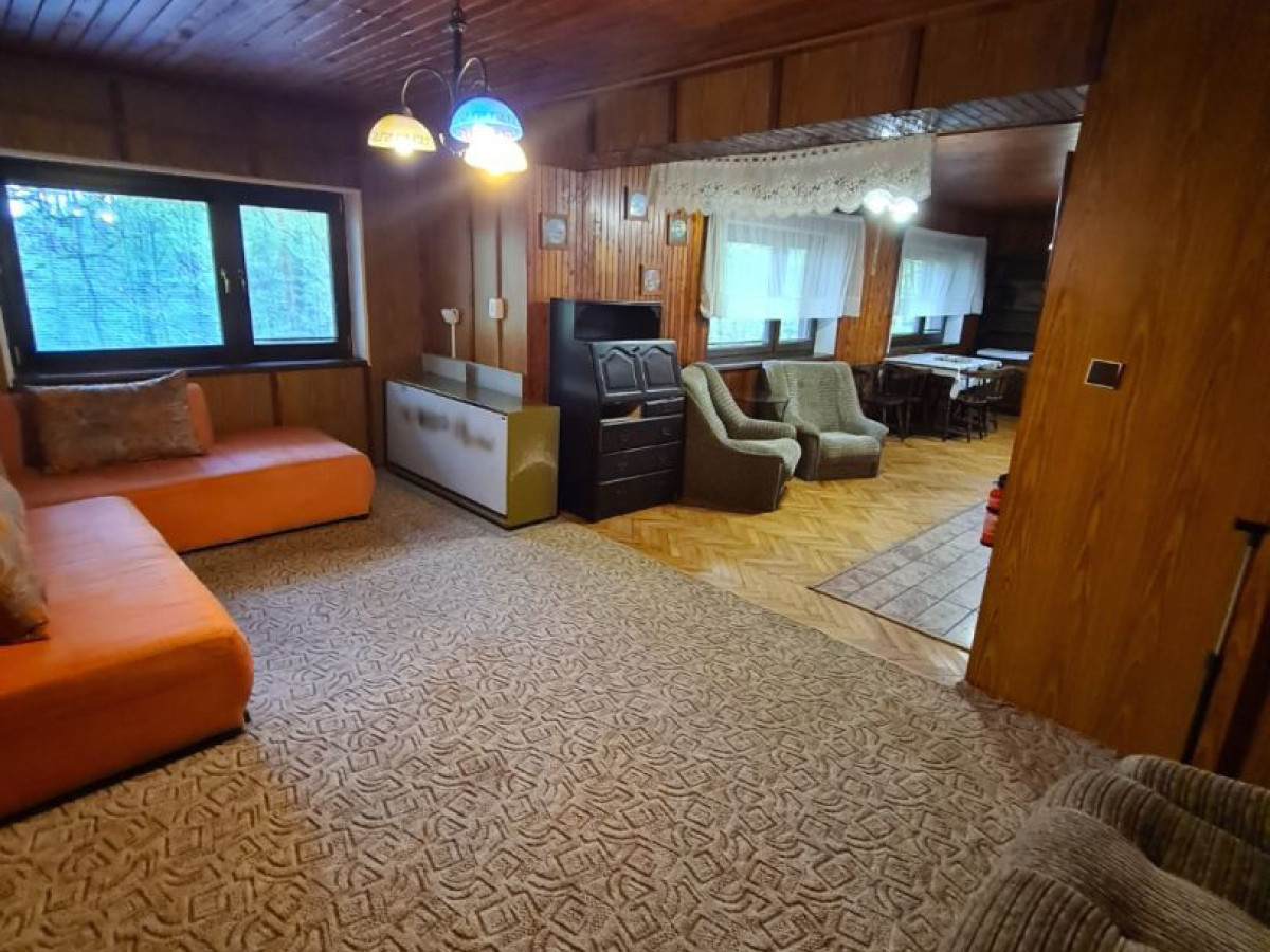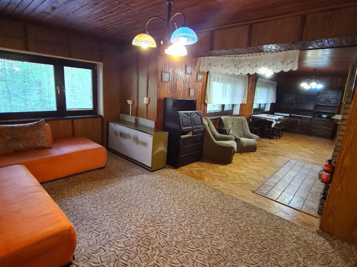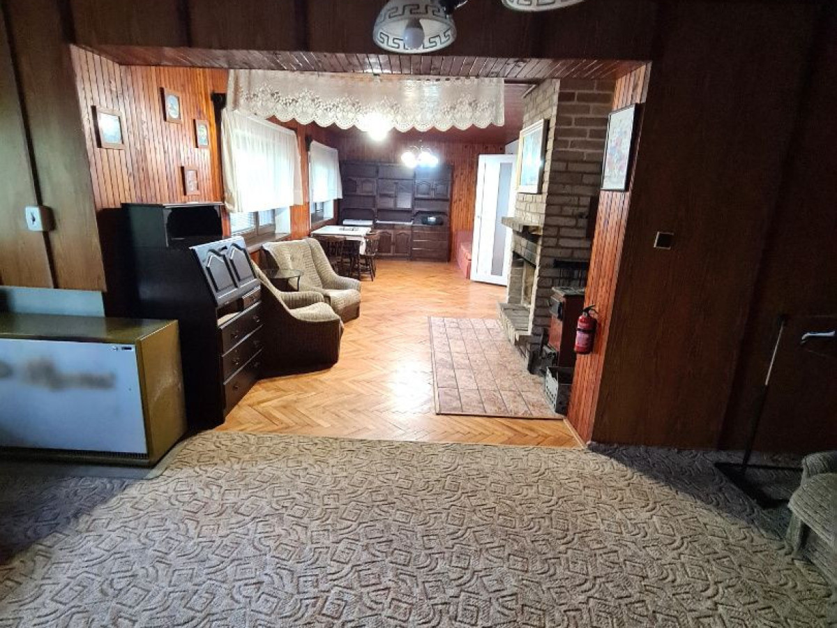 • V obývačke alebo dennej priestrannej časti sa nachádza veľký krb a je tam aj akumulačná pec. Podlahy v obývačke sú drevené parkety.
