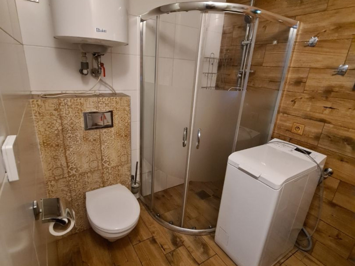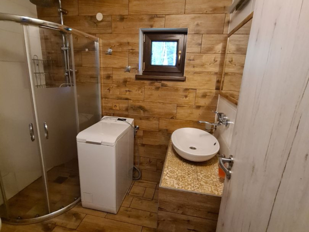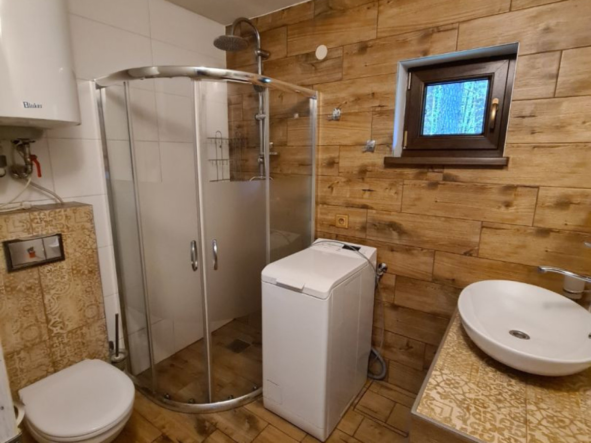 • Komplet zrekonštruovaná kúpeľňa s oknom, spoločná s WC. V kúpeľni je sprchový kút. Nachádza sa tam aj práčka a el. bojler na ohrev vody.