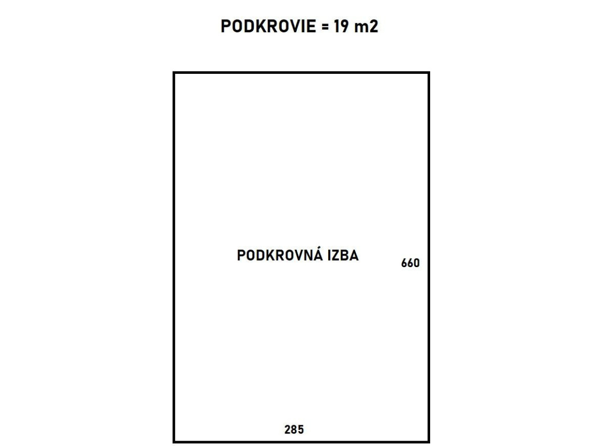 - Čiastočné obytné podkrovie: samostatná miestnosť 19 m2