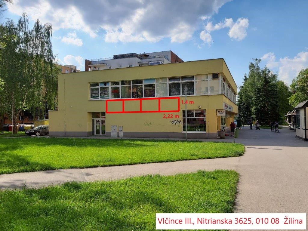 Ponúkame na prenájom reklamné plochy v rôznych lokalitách mesta Žilina. Plochy majú rôzne rozmery a sú situované vo frekventovaných lokalitách mesta. Cena dohodou