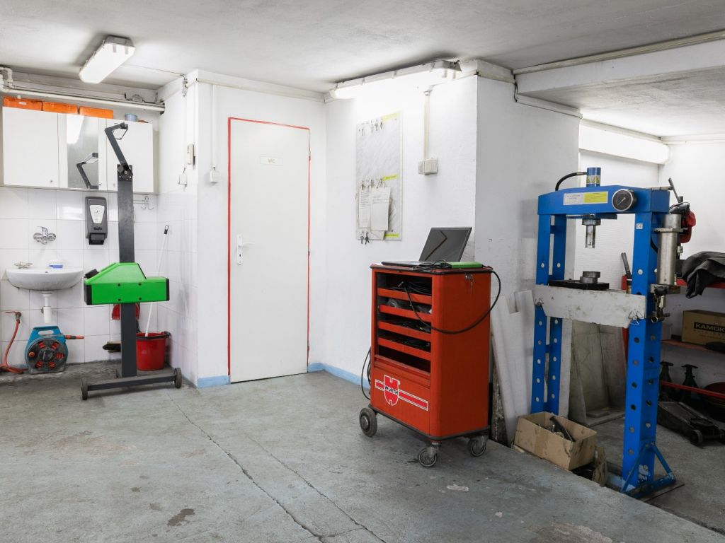 Vstup do priestoru dielne je riešený dvoma rolovacími bránami. Prvá brána smeruje do priestoru dielne, kde sa nachádza zdvihák, 2 montážne jamy a prístrojové vybavenie na fungovanie autoservisu. Druhá brána smeruje do miestnosti určenú na diagnostiku vozidiel, ako aj opravy. Priestor ponúka aj niekoľko menších technických miestností a skladov.